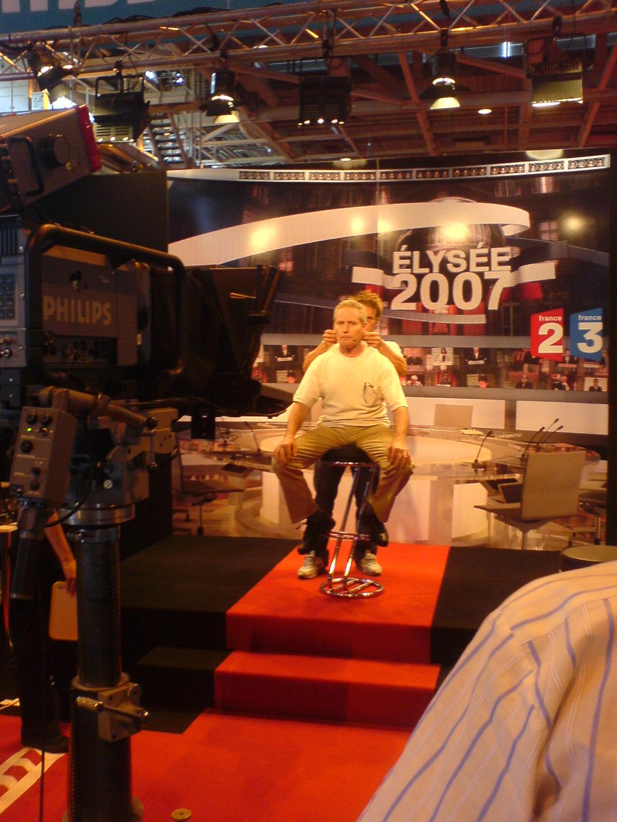 Et enfin, de nombreux stands de simulation étaient accessibles pour présenter la météo, effectuer des photos montages ou encore…faire l’annonce de l’élection présiedentielle avec prompteur et tout le matériel. TV5 offrait aussi la possibilité de faire un flash spécial sur fond vert avec incrustation numérique. L’INA (Institut Nationale de l’Audiovisuel) avait également un stand proposant de petits historiques audiovisuels mais aussi des quizz pour gagner des cadeaux INA ! A mon grand regret et après de nombreuses tentatives, je n’ai pas pû y participer (malgré des questions très accessibles).