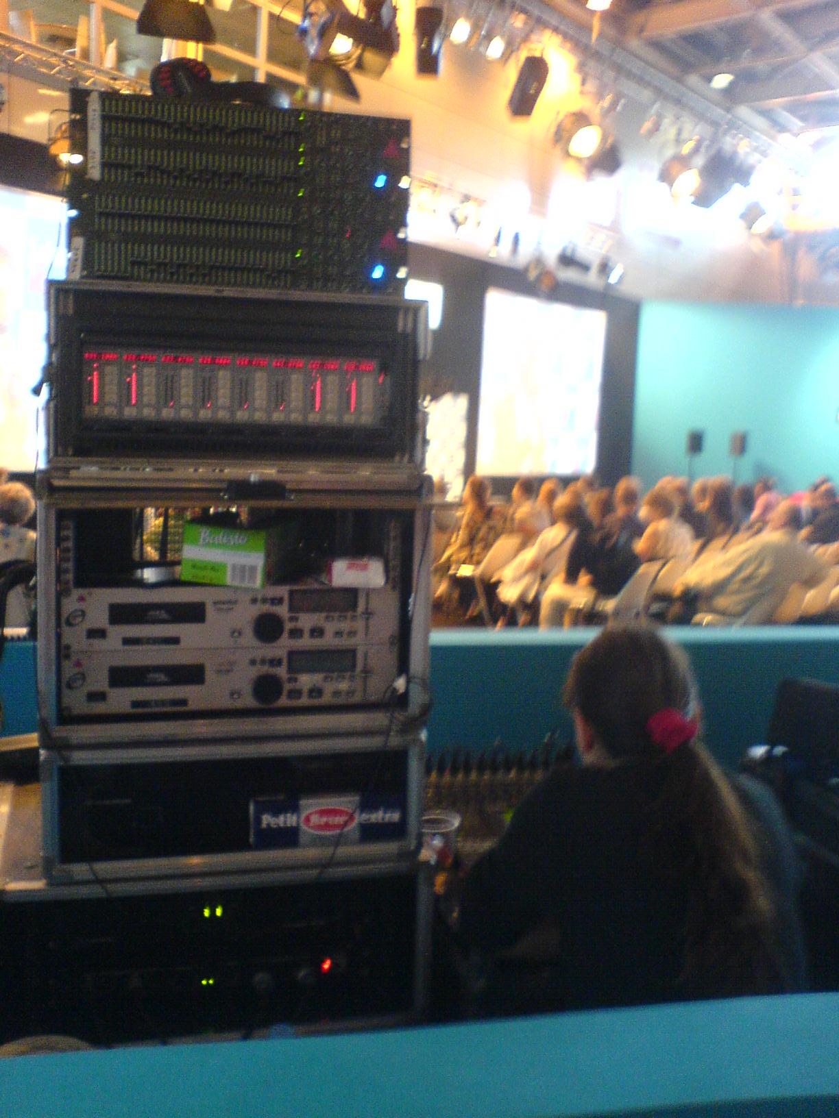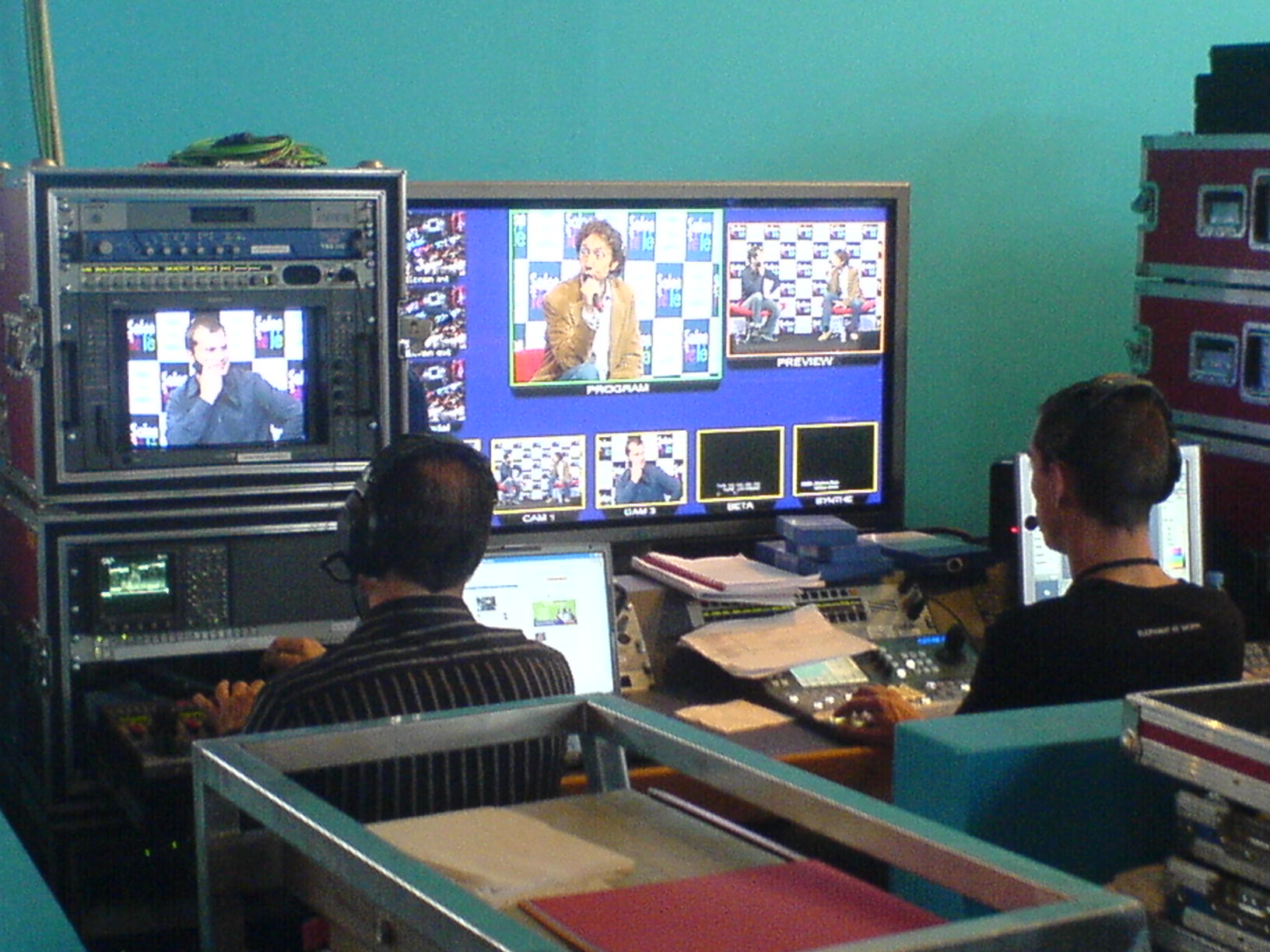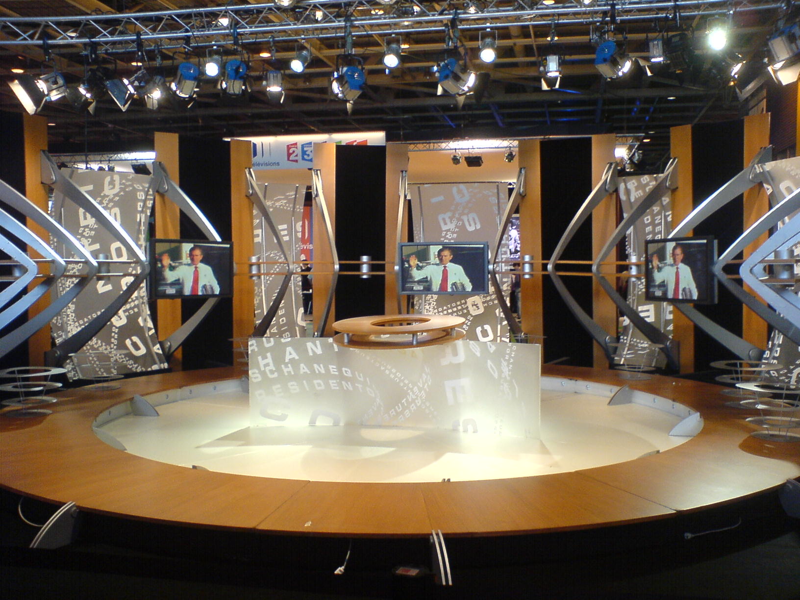 Cet espace était présenté comme étant le plus grand plateau télé du monde et de ce fait, chaque forum ou mini concerts étaient filmés comme n’importe quel programme télévisé. Des régies étaient dissimulées un peu de partout (1 ; 2 ; 3 ; 4). Au rayon des animateurs présents, ils étaient nombreux tout au long des quatres jours, venant débattre et échanger avec les téléspectateurs. Au niveau des débats, j’ai assisté à celui concernant la fiabilité des audiences que j’ai trouvé particulièrement truffé d’incohérences en tous genres et d’approximations…